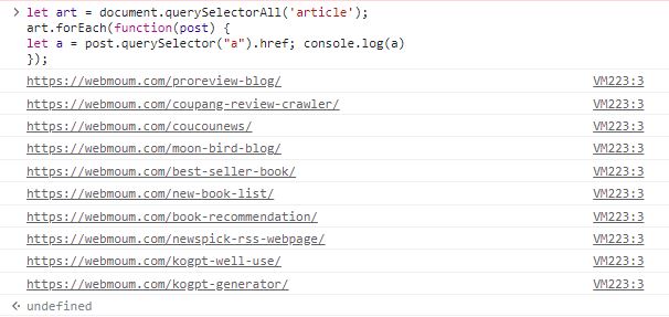 자바스크립트를 이용해 워드프레스 포스팅 목록에서 주소를 추출하는 방법입니다.